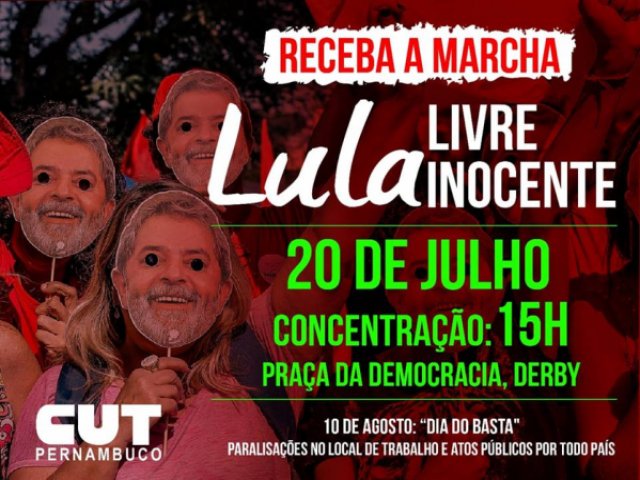 A “Marcha Lula Livre, Lula Inocente”, vai ser finalizada, na tarde desta sexta-feira (20), com ato politico na Praça da Democracia, no bairro do Derby/Recife. A Marcha, em defesa da liberdade de Lula e da democracia, é uma iniciativa do Movimento de Trabalhadores Sem Terra (MST) e da Frente Brasil Popular, com apoio da Central Única dos Trabalhadores de Pernambuco (CUT-PE).
